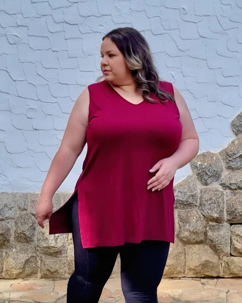 - > Regata alongada Vestleg Feminina PLUS SIZE Marsala