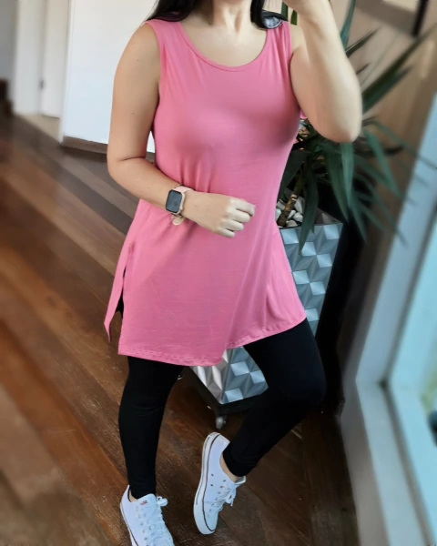 - > Regata Longline Alongada Vestleg Feminina Rosa